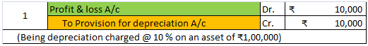 Maintain a provision for depreciation account and show the asset account at original cost. In this method, no entry is passed through the asset account. See the journal entries below: