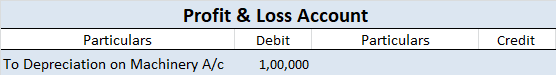 10,00,000 x 10/100 = 1,00,000 will be depreciation for the year and will be shown on the debit side of Profit & Loss A/c.